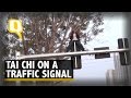 gerakkan taici di atas palang lampu isyarat di satu persimpangan yang